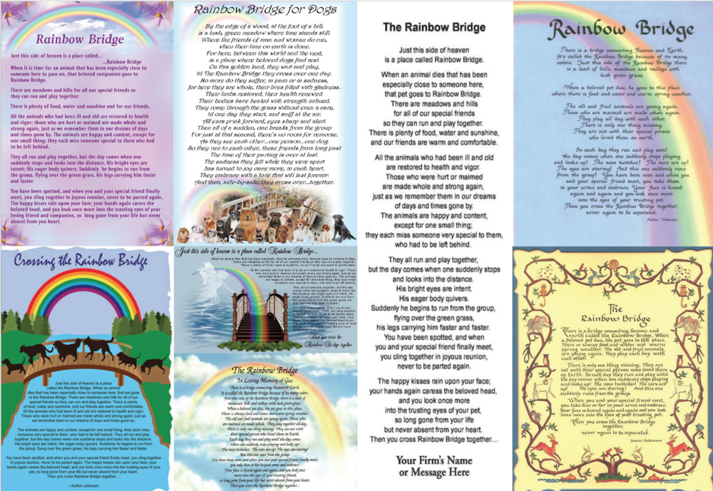 Feel free to download it and share with someone in need. For a printable version of the rainbow bridge poem click here. Unframed print of rainbow bridge poem for loss of pet. When an animal dies that has been especially close to someone here, that pet goes to rainbow bridge. The story tells of a lush green meadow just this side of heaven (i.e.